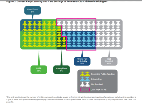 “In the PreK for All Roadmap, Michigan set a goal to serve 75% of four-year-olds in high quality programs, which would make Michigan the top-enrolling state in the country,” Hall told CapCon in an email. “Families can still enroll four-year-olds in free PreK this school year, and we are working with partners across the state to ensure every family has access to the PreK education that meets the unique needs of their child and family.”