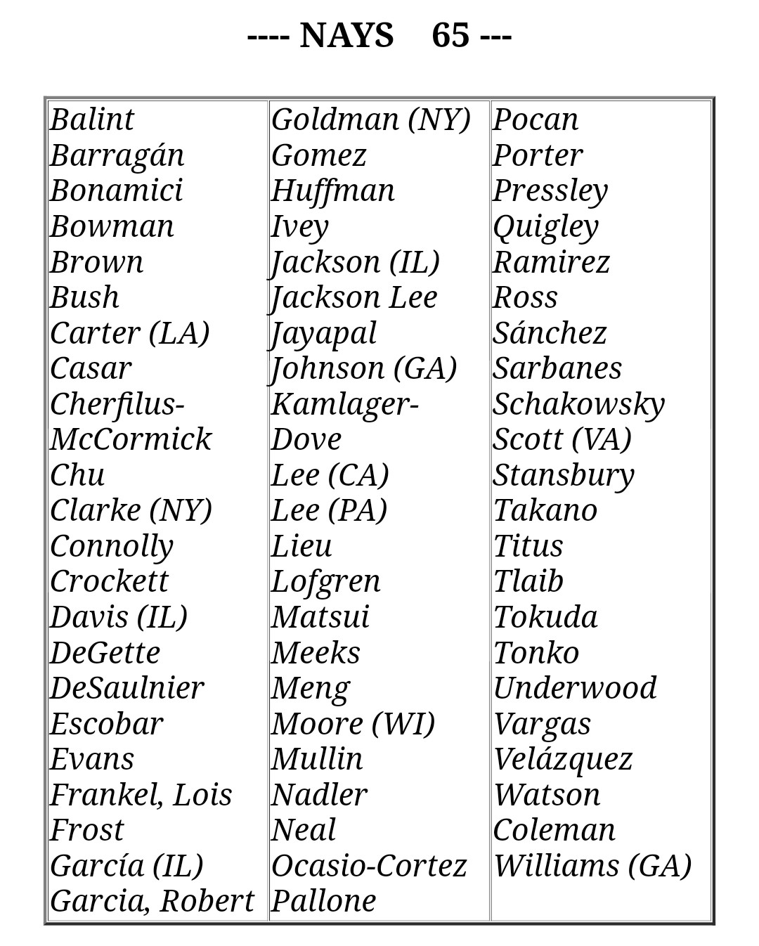 Tlaib was one of only of 65 representatives, all Democrats, to vote no.