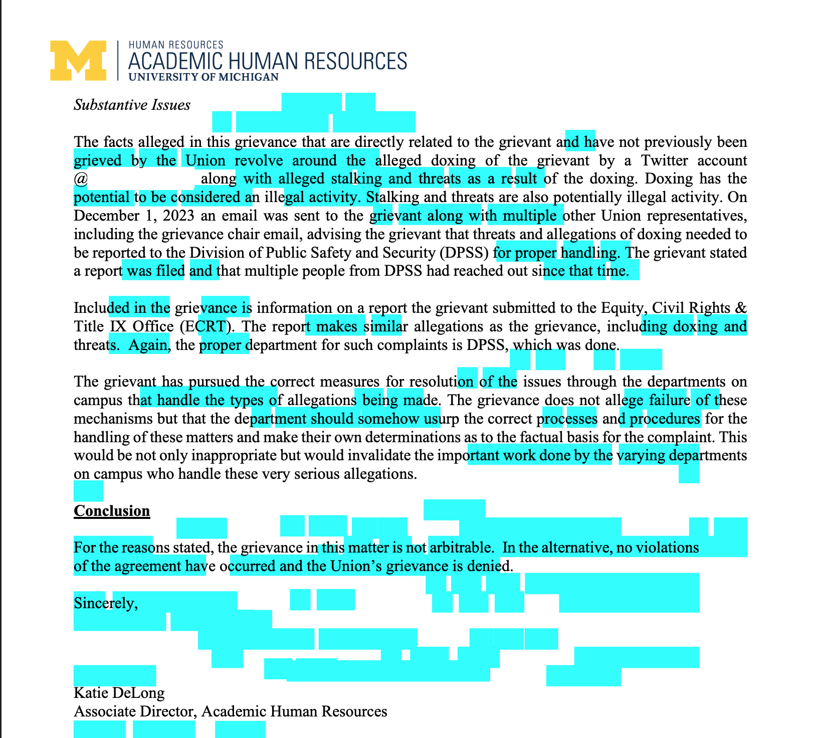The GEO criticized the U-M administration for having “contributed to a climate of hostility, harassment, and repression on Palestine-related issues for members of the bargaining unit.” More than 100 undergraduate students, graduate students, staff, alumni, and others signed the document with redacted names. CapCon obtained the documents through a records request.