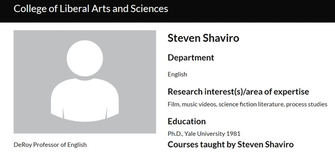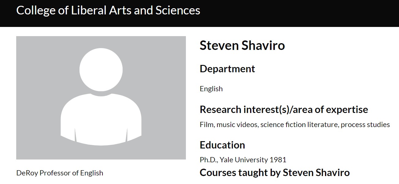 Shaviro’s picture has been removed from his Wayne State webpage.