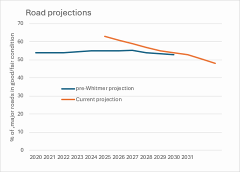 The latest annual report from the Michigan Transportation Asset Management Council shows that Michigan's roads are slightly better now than they were when Gov. Gretchen Whitmer entered office. But projections show she is further away from the goal of making long-term improvements. Whitmer borrowed billions for a temporary increase in road improvements.
