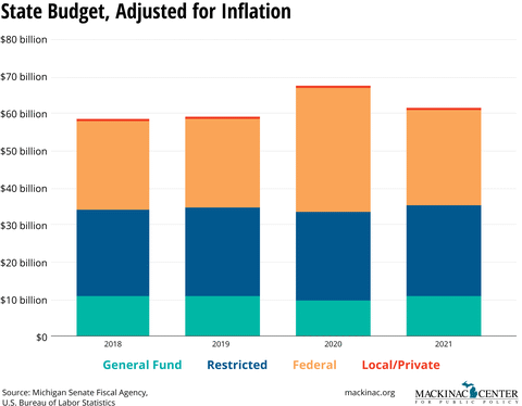 Gov. Gretchen Whitmer has asked the federal government to give states more money as part of an additional pandemic relief spending deal. Yet the state budget has increased — both despite the pandemic and because of it. Spending is up despite the pandemic because revenue has recovered. And it’s up because of the pandemic, since federal relief efforts have put much more into the state budget than the state lost in tax revenue.