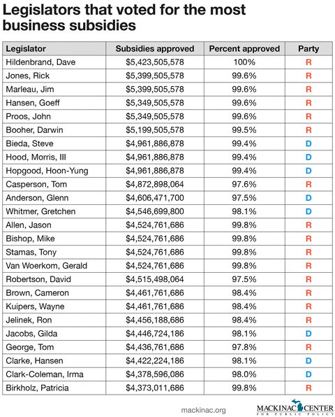 Michigan voters can now see where their lawmakers have stood on state business subsidies from 2001 and into the current legislative session. A new scorecard from the Mackinac Center and MichiganVotes.org shows where every lawmaker came down on votes for corporate handouts that pit regular taxpayers against select business interests and developers.