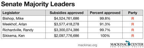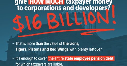 Michigan lawmakers have authorized the state to spend a lot of money to subsidize businesses since 2001: $16 billion, in fact. That is more that the value of the Lions, Tigers, Pistons and Red Wings with plenty leftover. Or in state budget terms, it could pay off state employee pension debt or resurface nearly all of the state’s highways.