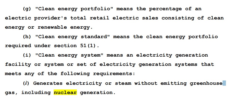 Until 2035, though, the renewable energy standard is what applies. And nuclear is specifically left off the list. The relevant portions of the bill are pictured below:
