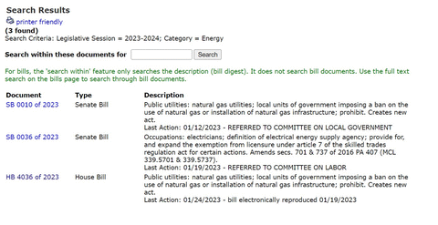 Three bills relating to energy have been submitted in the 102nd Michigan Legislature.