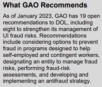 Read it for yourself: GAO Report: Unemployment Insurance: DOL Needs to Address Substantial Pandemic UI Fraud and Reduce Persistent Risks
